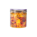 The Popular Mango Pickle in Mustard Oil is a traditional Indian condiment, typically made from raw mangoes and flavored with a blend of spices. Packaged in a 400g glass jar, it offers a tangy, spicy, and savory taste that pairs perfectly with a variety of Indian dishes like rice, parathas, and curries. The mustard oil used in the pickle adds a rich, aromatic depth to the flavor. It's known for its sharp, pungent heat and a distinctive texture, with the mango pieces marinated in a spiced oil blend. Ideal for those who enjoy bold, flavorful pickles with a balance of sourness and spice.